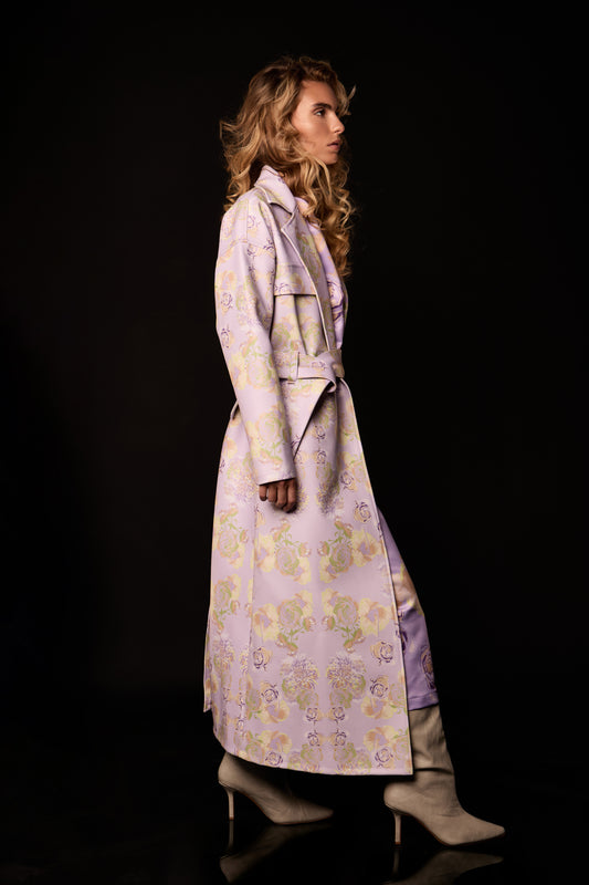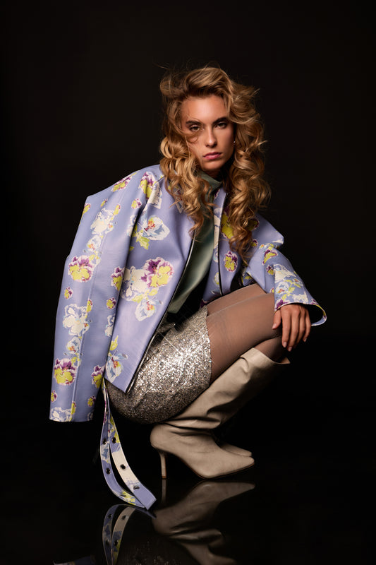 Oversized Jacke aus veganem Leder mit Blumenprint