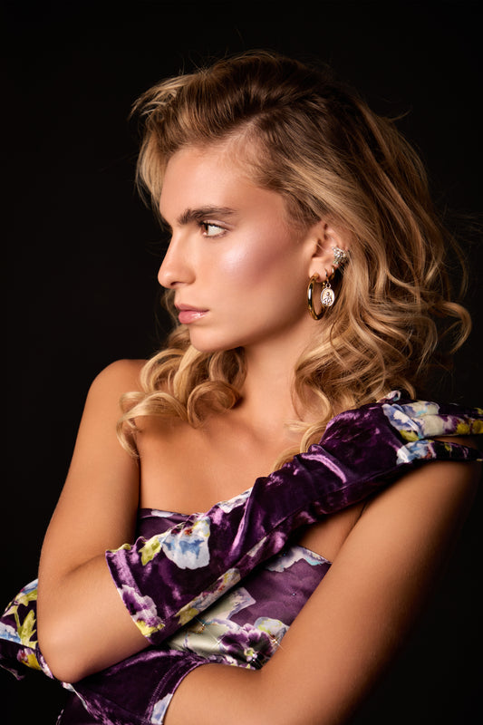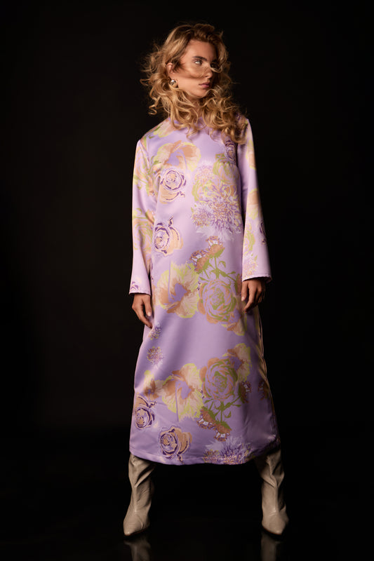 Kleid aus Duchesse-Satin mit exklusivem Print