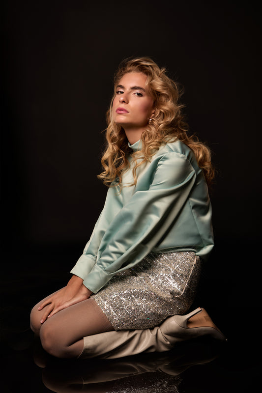 Bluse aus Duchesse-Satin in Pastell-Mint